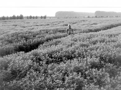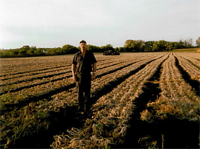 Larry as a young boy standing in a peppermint field.